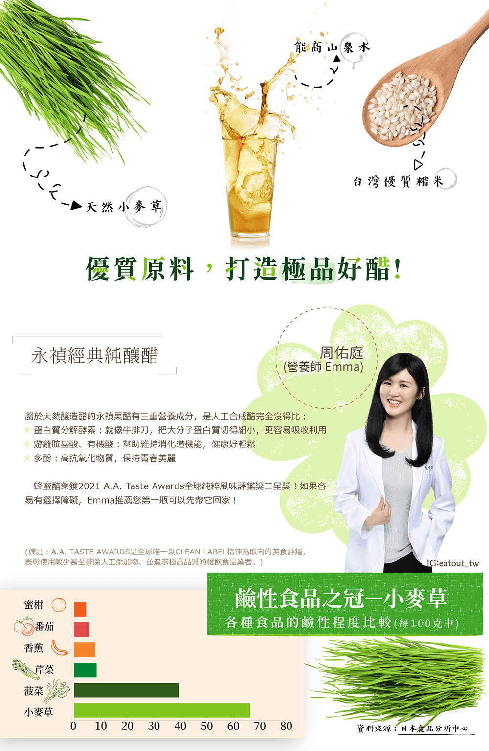 ◎ 獨特秘方新鮮小麥草+糯米十倍用料釀醋2年以上,有效提高養分濃度