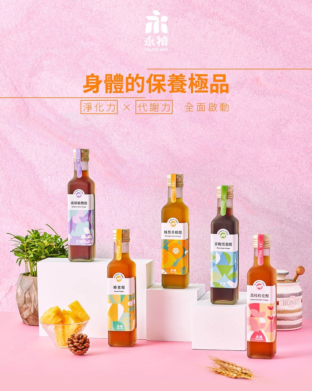 ◆ 濃醇醋:精選濃醇醋,五種口味可以選: 蜂蜜、荔枝桂花、青梅黑棗、桑椹橄欖、鳳梨香檬
