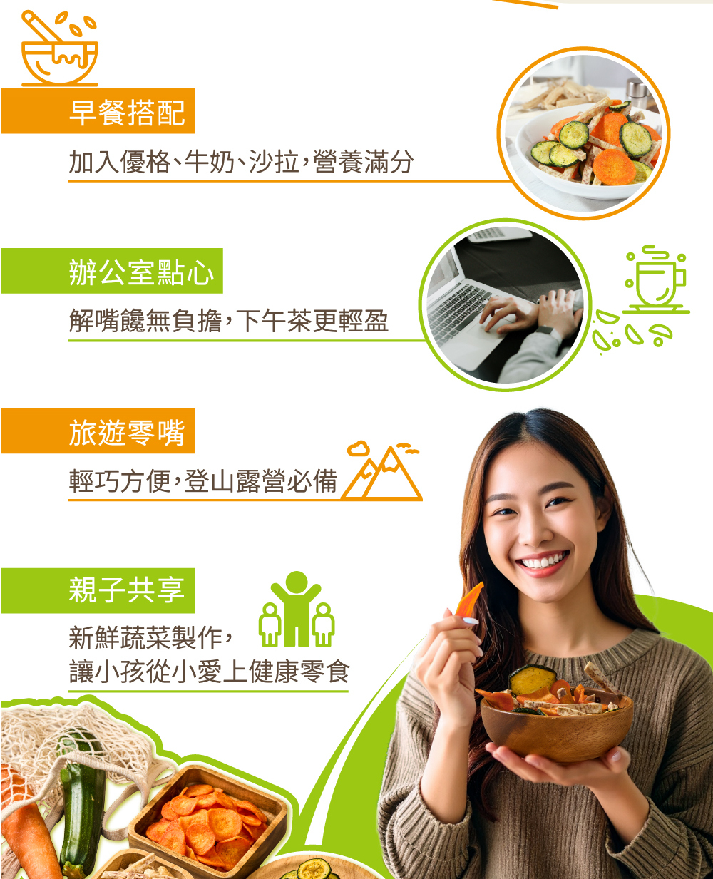 ◎ 蔬菜脆片100%台灣在地蔬菜,輕鬆補充膳食纖維