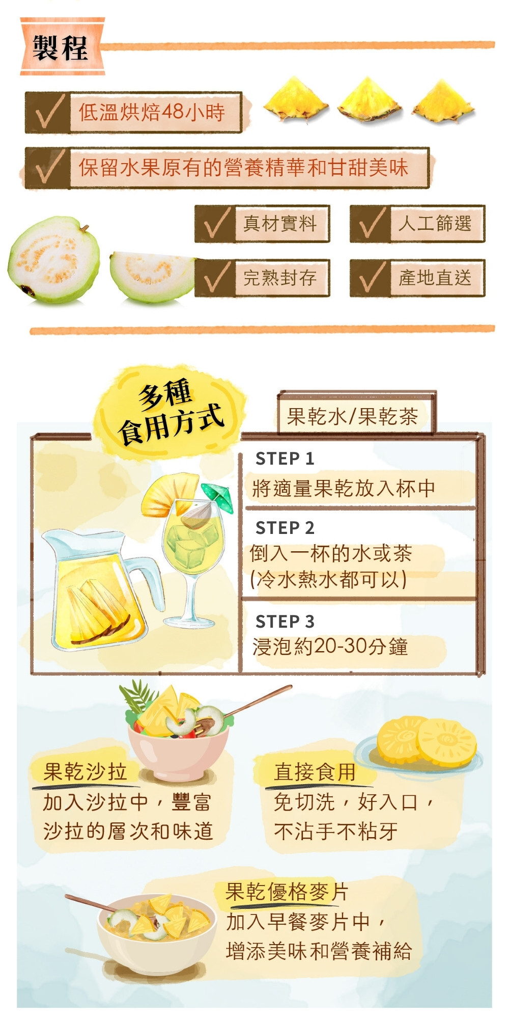 | 內含 | 無糖芒果乾-100g x 1包 無糖鳳梨乾-120g x 1包 |
