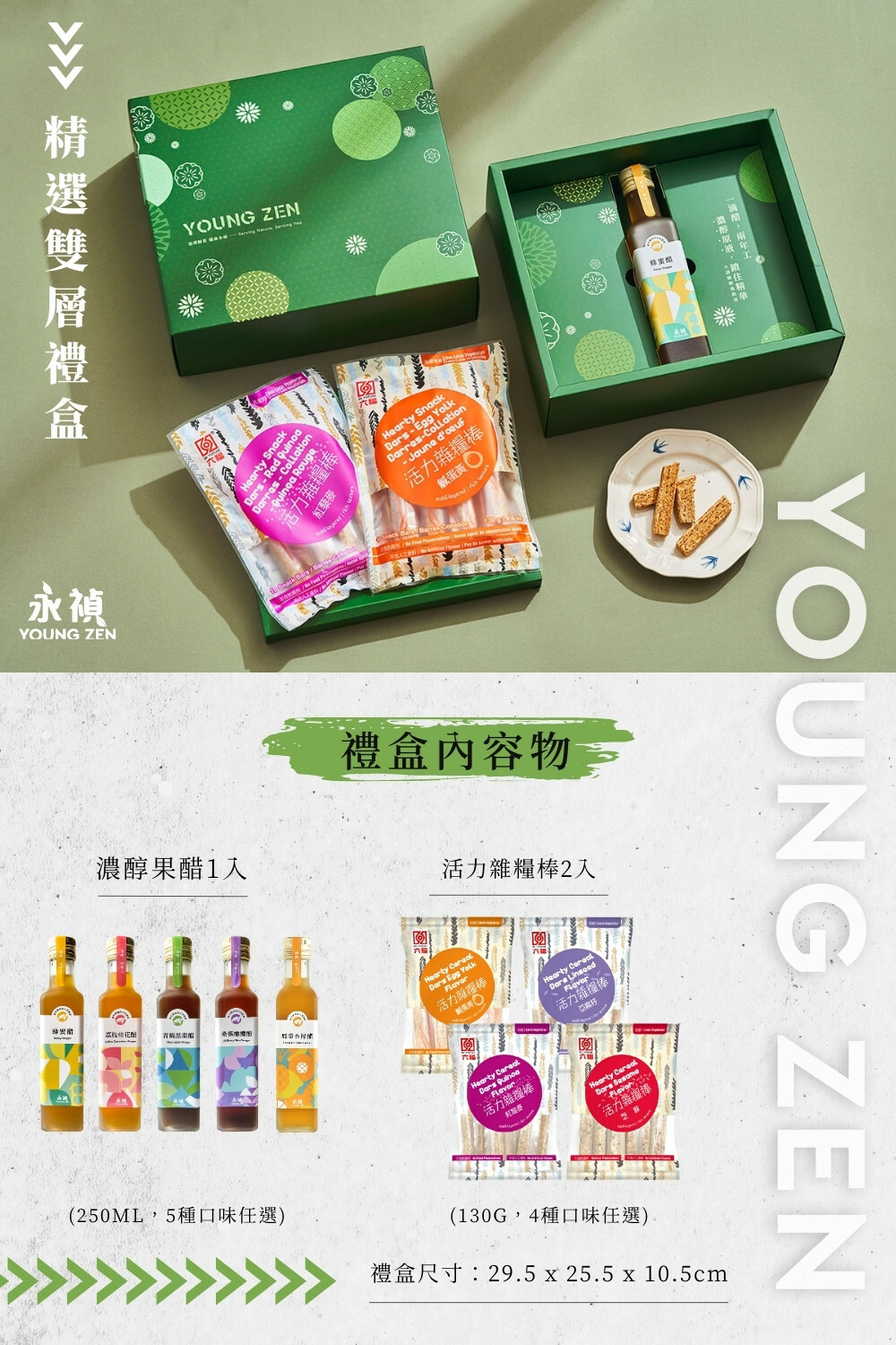 | 品名 | 永禎精選雙層禮盒 - 果醋雜糧棒組合 |