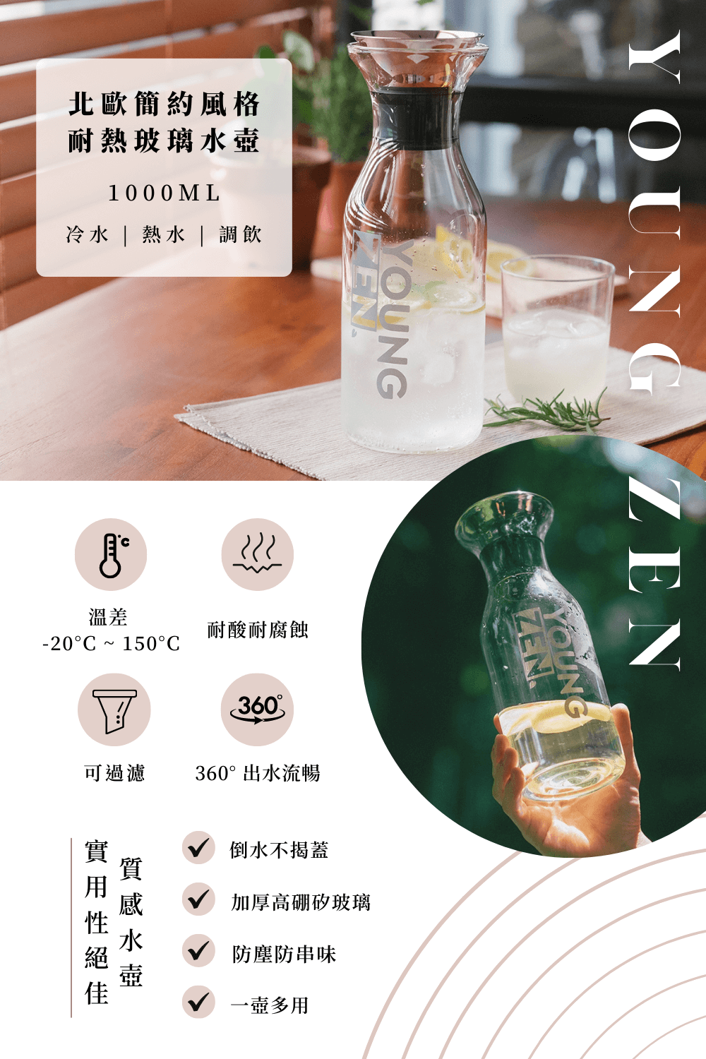 ◎ 北歐時尚簡約風格耐熱玻璃水壺