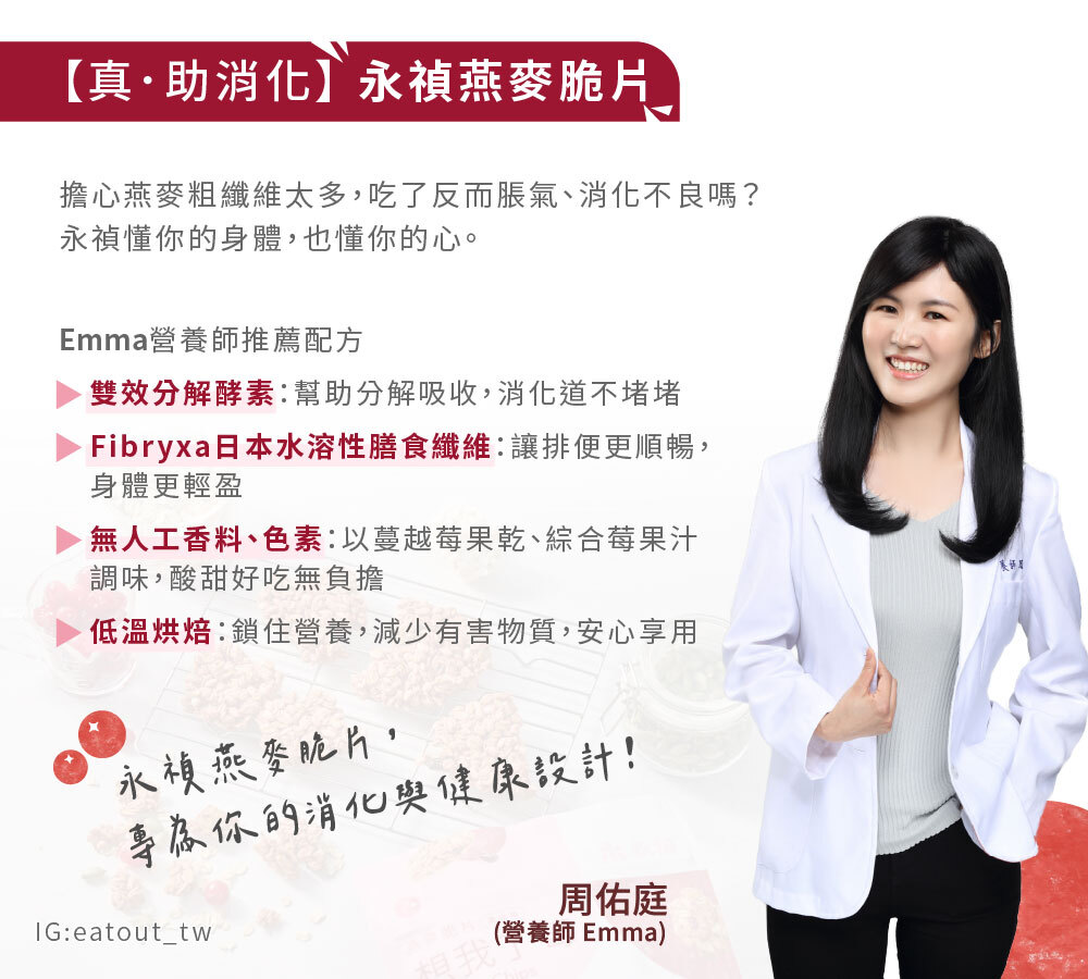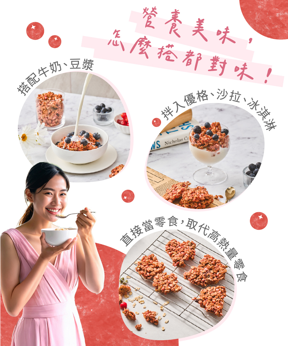 ◎ 嚴選大燕麥片x蔓越莓果乾,輕鬆補充膳食纖維