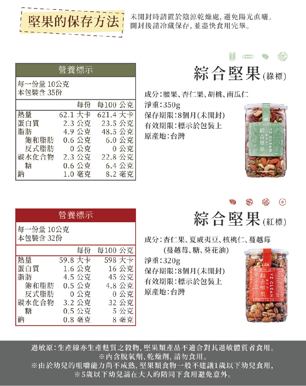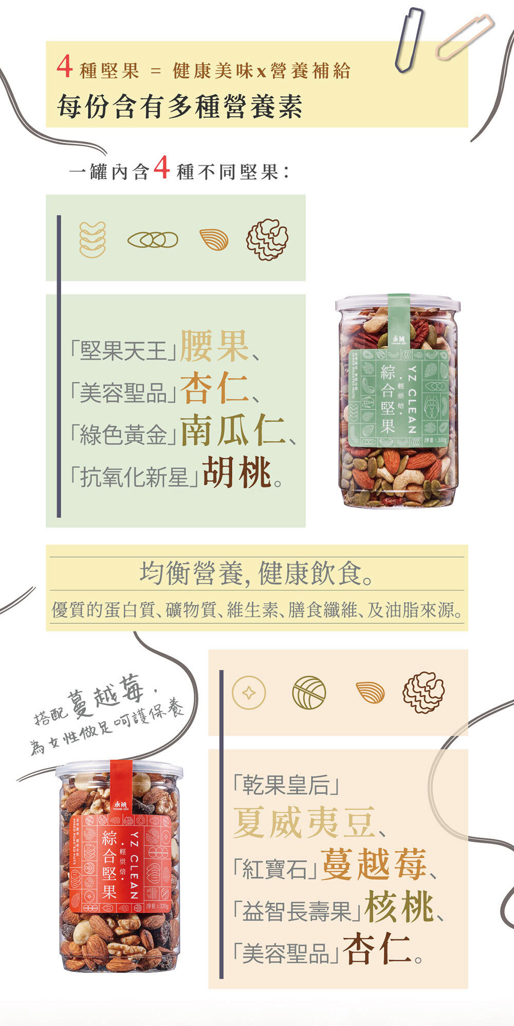 ◆ 元氣堅果 (紅標):女神級配方!含4XL 夏威夷豆、美國加州大核桃與天然蔓越莓,補充優質油脂與好氣色。