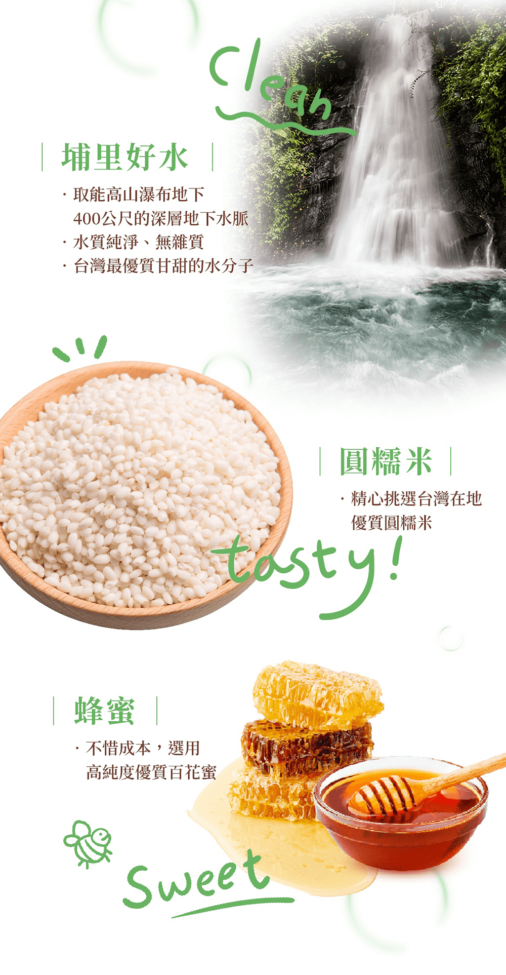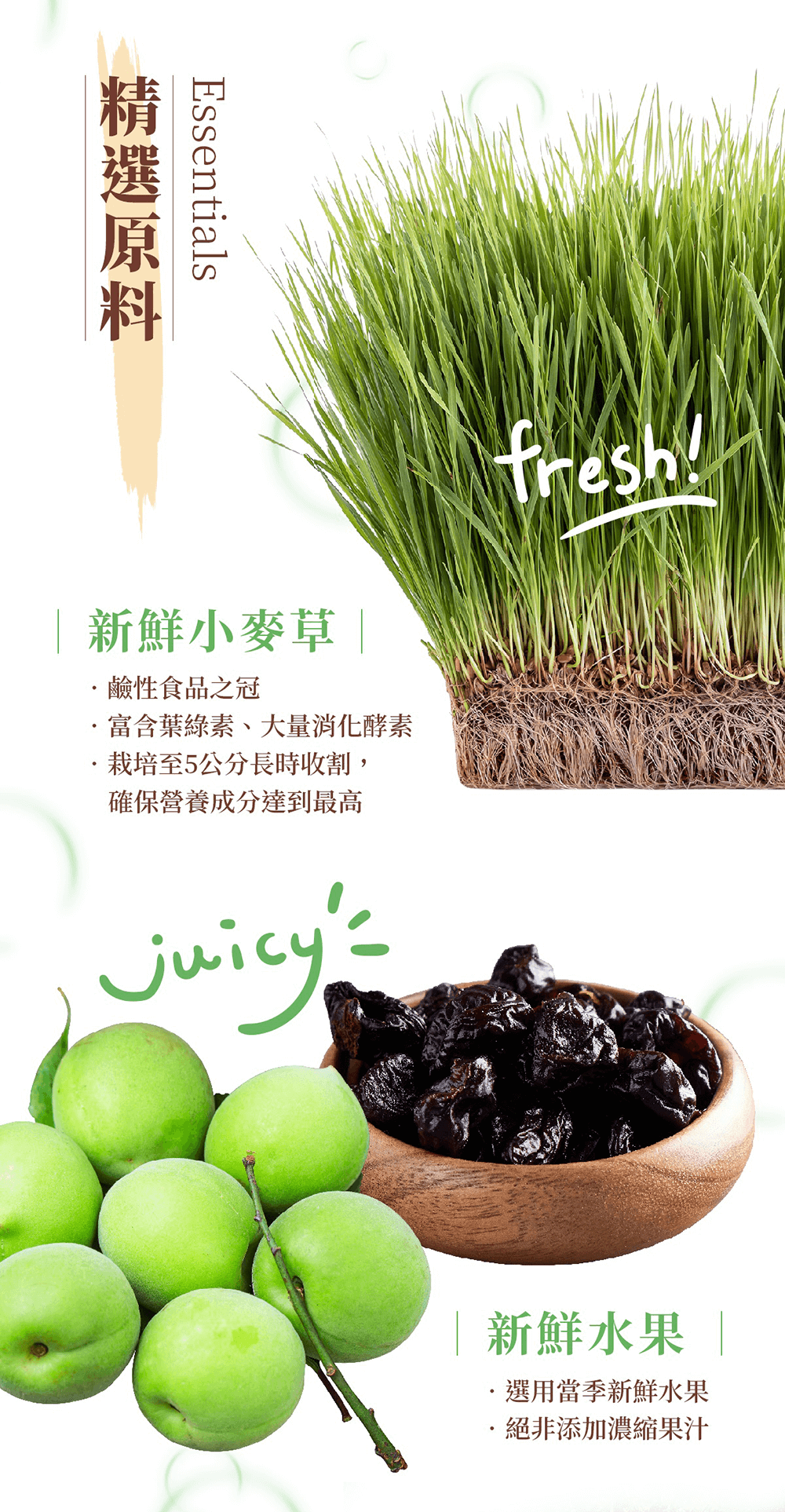 | 成分 | 水、糖、糯米、梅子、黑棗、小麥草 |
