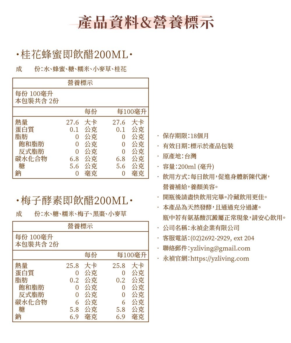| 內含 | 梅子酵素輕醋飲200ml x 6瓶 |